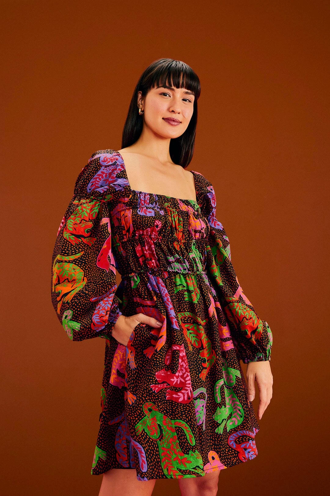 A lot of awe-inspiring elements in just one dress! The Black Wild Leopards Midi Dress is here to embrace you and your joyful plans. It has a standout bodice and long sleeves, but you can still show some legs (and also your cool tights and boots!) with its length. So invite eye-popping accessories and go have fun all season long 🙂