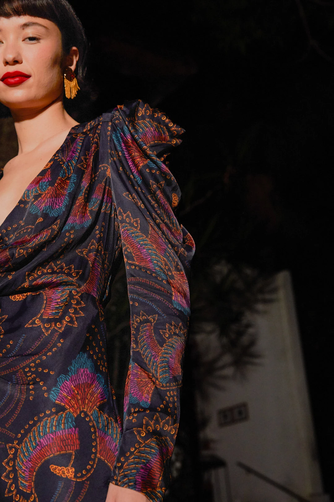 - Long ruched sleeves